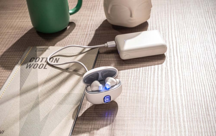 Art. HD08299 Auricolari wireless leggeri per l'uso quotidiano, con avanzata qualità del suono. Realizzate in ABS riciclato (100% rABS). Ingresso USB-C. Custodia di ricarica 200 mAh, durata approssimativa della batteria: auricolari 4 ore; combinati 10 ore. Tempo di ricarica approssimativo 1 ora. Diametro altoparlante 10 mm. Potenza sonora 27 mW. Include cavo USB-A / USB-C. Presentato in confezione scatola regalo in carta kraft 6,2 x 4,9 x 2,9 Cm.
