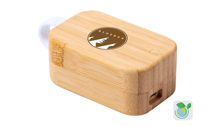 Art. ST4137 Auricolari bluetooth in custodia di bambù con funzione di chiamata in vivavoce . Cavo di ricarica USB incluso.