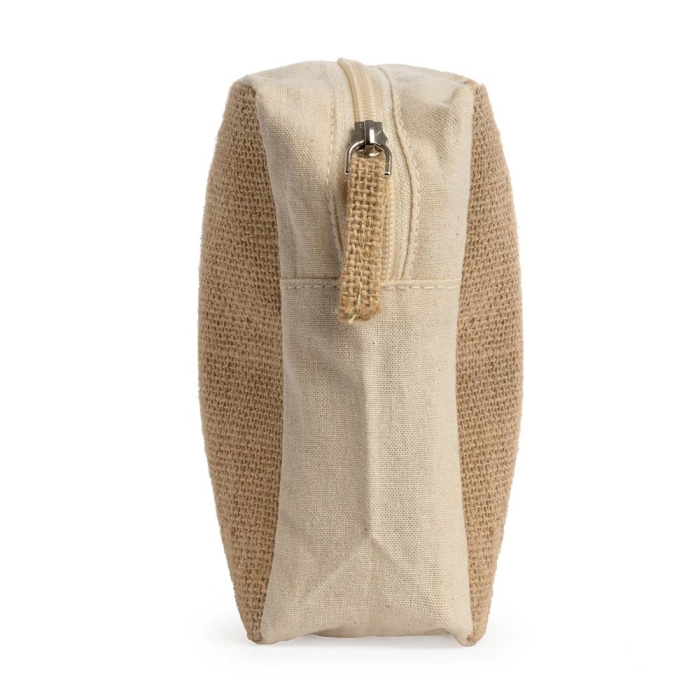 Art. ST8674 Beauty case in cotone e juta laminata. Pratico dotato di zip con tiretto in juta abbinato.