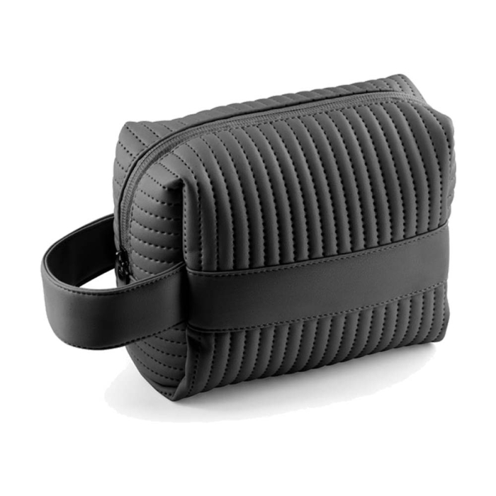 Art. HD03200 Beauty case promozionali con un design unico, con texture trapuntata e foderata. Realizzate in materiale riciclato. Maniglia laterale per una facile la presa. Perfetta per personalizzazione.