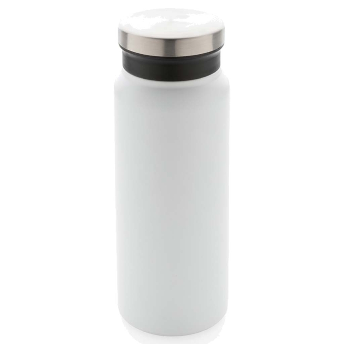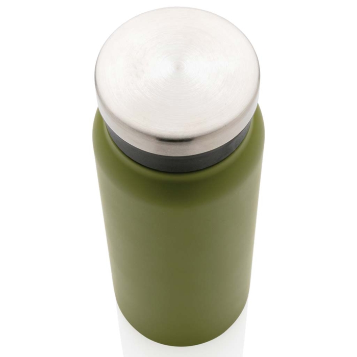 Art. X433-02 Borraccia doppia parete, isolata a vuoto in acciaio inossidabile. Dotata di un coperchio a vite sicuro con un'ampia apertura che facilita la pulizia e il riempimento. L'inserto in PP per una presa sicura. Mantenere le bevande calde per 5 ore o fredde per 15 ore. Senza BPA. Capacità 600 ml. Inclusa confezione regalo kraft certificata FSC®.