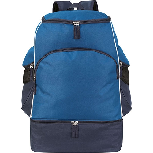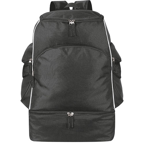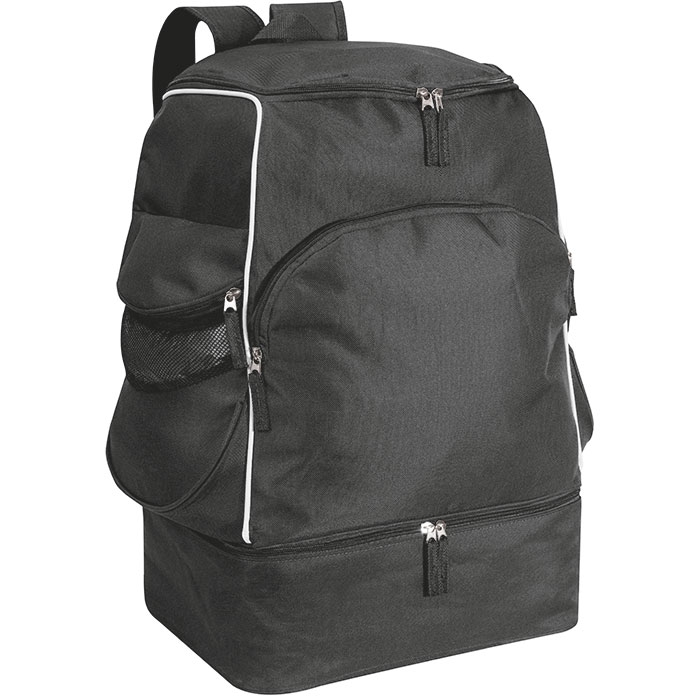Art. GM36669 Zaino sportivo con doppio fondo per scarpe, ideale per palestra, piscina e sport di squadra. Dotato di un’ampio comparto principale con apertura a pozzetto, tasche laterali con rete, spallacci imbottiti e maniglia per il trasporto. La vaschetta è disponibile su richiesta.