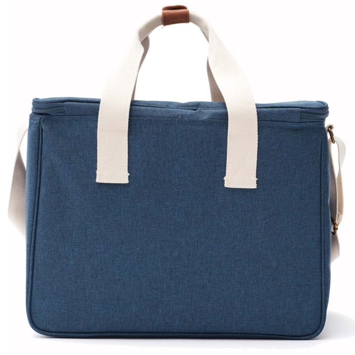 Art. X5120V Spaziosa borsa frigo con coperchio mette fine alle vecchie e noiose versioni in plastica. E' in tessuto melange accompagnato da dettagli in PU che la rendono elegante come una normale borsa. Il rivestimento in PEVA mantiene il fresco per un lungo periodo di tempo e facilita la pulizia. Include tracolla e manici.