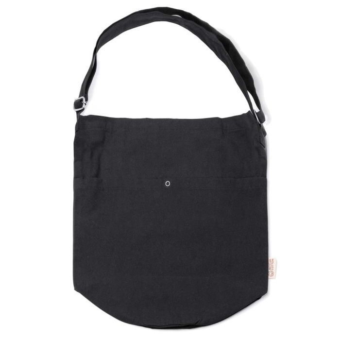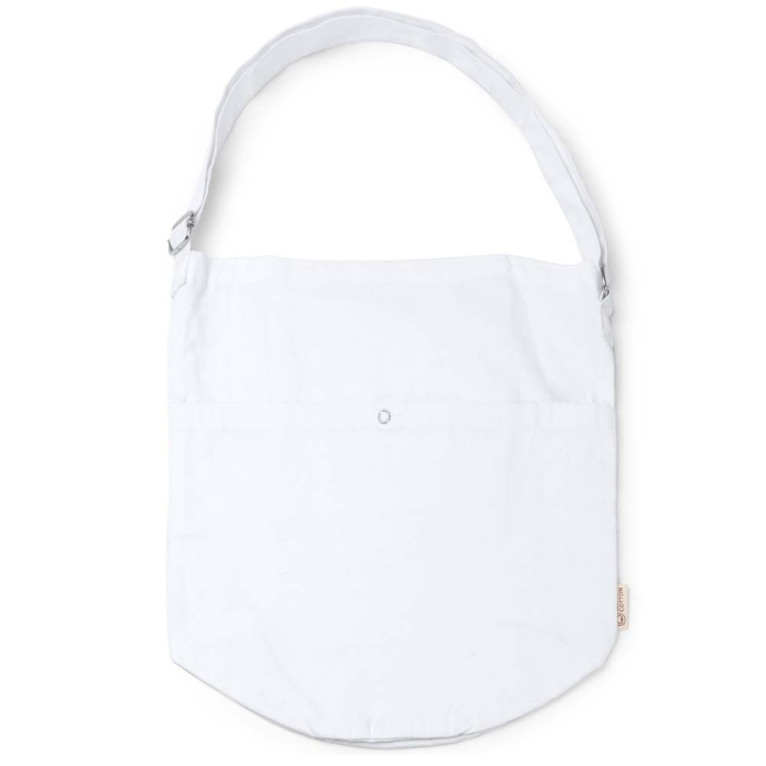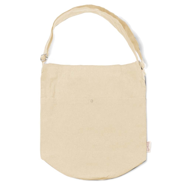 Art. ST2699 Borsa Tracolla realizzata in cotone riciclato da 240 g/m² dotata di una tasca frontale e una interna. Presenta una chiusura a bottoni. Manico regolabile.