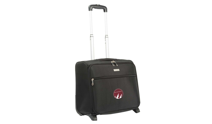 Art. GT77103 Trolley pilota con 2 ruote, scomparto principale con chiusura zip. Interno imbottito porta computer, misura massima 17’ pollici. Manico telescopico estraibile.