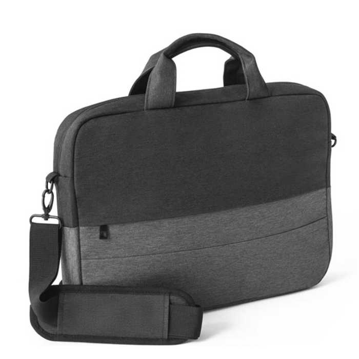 Art. HD03197 Borse portacomputer personalizzate TOP design imbottita. Realizzate in poliestere riciclato 600D ad alta densità. Composte da uno scomparto principale con una tasca per un computer portatile fino a 15". La valigetta è dotata di una tasca frontale con cerniera. Sul retro è presente una cinghia per trolley in caso di necessità.
