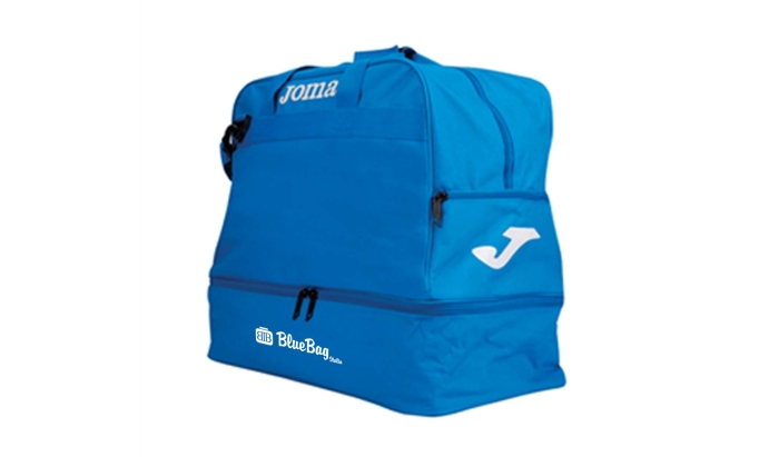 Art. GM511117 Borsone da calcio Joma. Può essere anche un borsone da tennis o da basket. Grazie al suo scomparto interno imbottito e la tasca porta scarpe. Questa borsa sportiva è realizzata in una fibra sintetica, resistente e leggera.