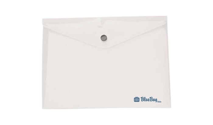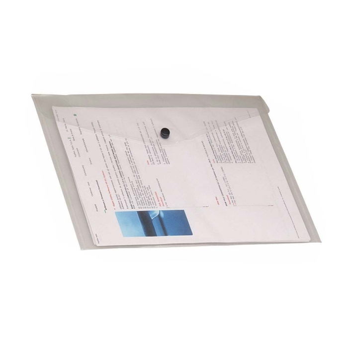 Art. SA3779 Busta portadocumenti in pvc trasparente. Chiusura con bottone. Disponibile in diversi colori.