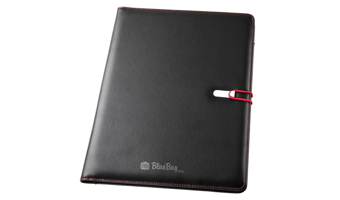 Art. SA3783 Cartella congresso 2 ante in similpelle. Completa di blocco, vano portapenne e varie tasche portadocumenti. Viene fornito all´interno di una scatola di carta kraft.