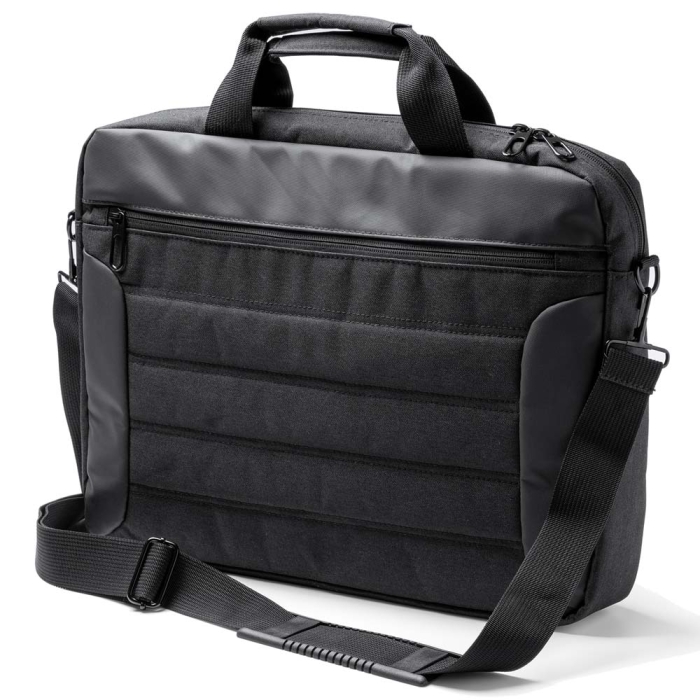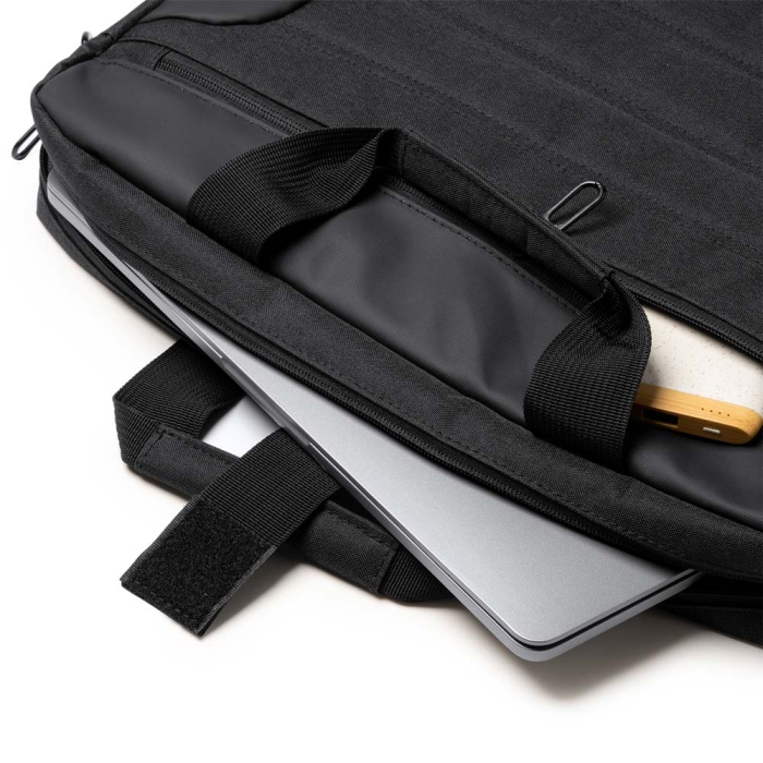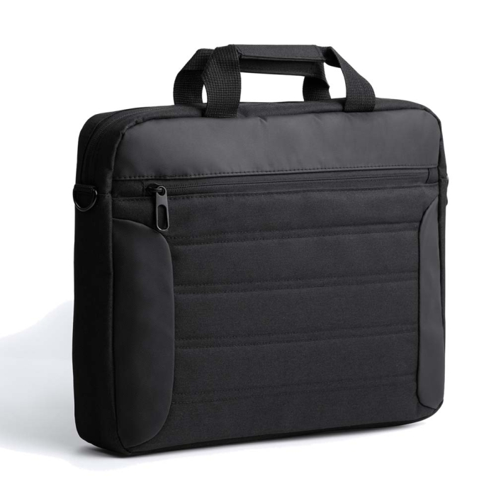 Art. ST2314 Portadocumenti imbottito per contenere un laptop da 15 pollici. Realizzato in pelle PU. È dotato di due spaziosi scomparti che consentono di trasportare separatamente il computer e i documenti, mantenendoli organizzati. Dotato di maniglie per il trasporto e tracolla regolabile.