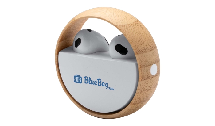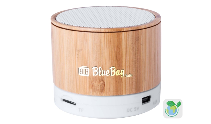 Art. AP832224 Cassa bluetooth corpo in bambù con funzione vivavoce, radio FM e batteria ricaricabile integrata. Incluso cavo di ricarica USB.