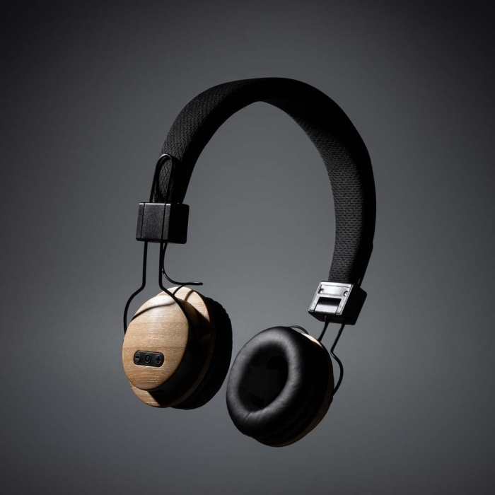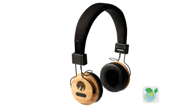 Art. ST4153 Cuffie bluetooth pieghevoli con decorazione in bambù e batteria ricaricabile incorporata. Con funzioni di chiamata in vivavoce e riproduzione di micro SD MP3. Inclusi Jack audio da 3,5 mm e cavi di ricarica USB.
