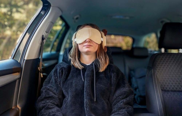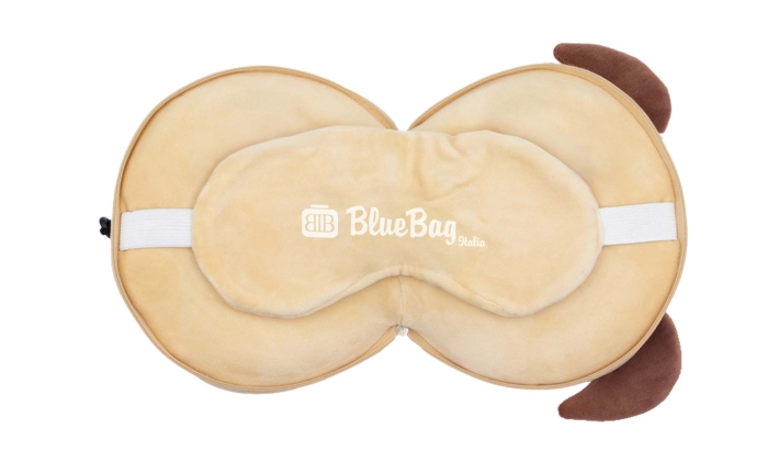 Art. FF930-27 Cuscino da viaggio a forma di cane, peluche, dotata di mascherina per gli occhi che lo rende adatto come cuscino da viaggio, migliorando il comfort di viaggio, dotato di un gancio per appenderlo facilmente, prodotto in peluche.