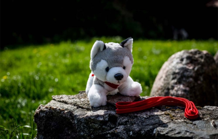 Art. FF703-20 Husky di Peluche con Foulard con Logo. Dotato di T-shirt personalizzabile realizzata in poliestere.