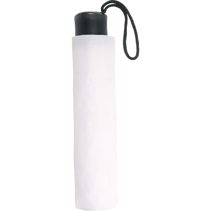 Art. PB29363 Micro ombrelli personalizzati compatti e pratici, l'ombrello super mini 21” in metallo e poliestere 190T. Dotato di apertura manuale, manico in plastica con laccio e fodera in nylon. È possibile personalizzare l'ombrello con stampa serigrafica.