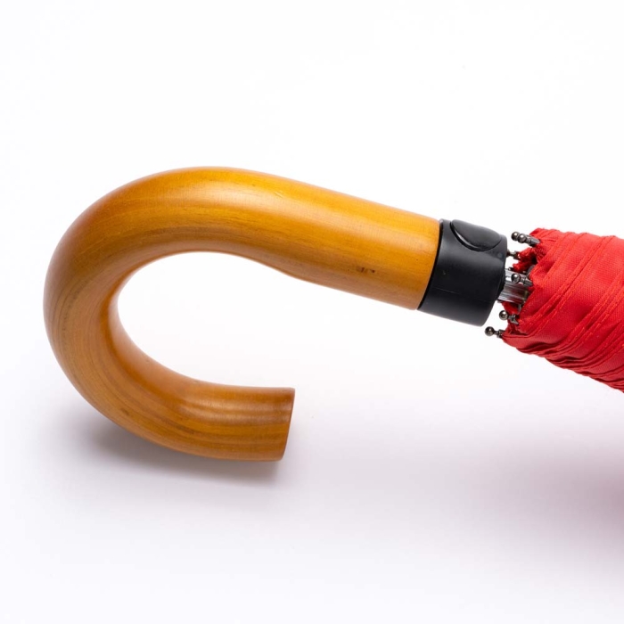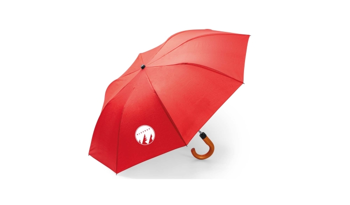Art. ST2274 Ombrello personalizzato con manico curvo in legno naturale che dà un tocco di stile e calore all'ombrello, offrendo una sensazione naturale e confortevole quando lo si tiene in mano. Inoltre, l'ombrello è dotato di un pulsante di apertura automatica e di una chiusura in velcro. Include una fodera coordinata.