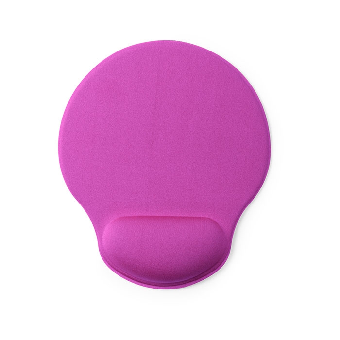 Art. GM7251KT Tappetino per mouse morbido in poliestere. Base in silicone antiscivolo e poggiapolsi previene stress e dolori articolari. Disponibile in un ampia gamma di colori.
