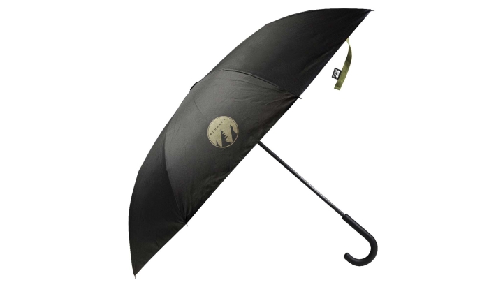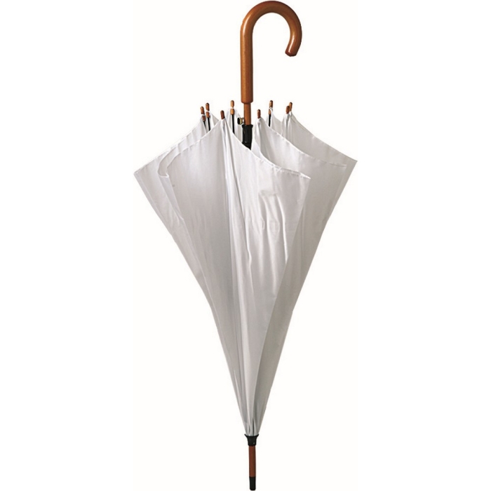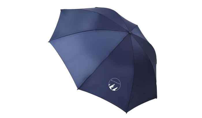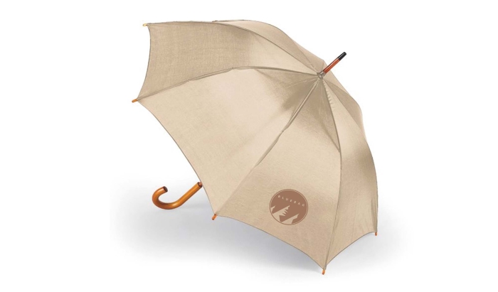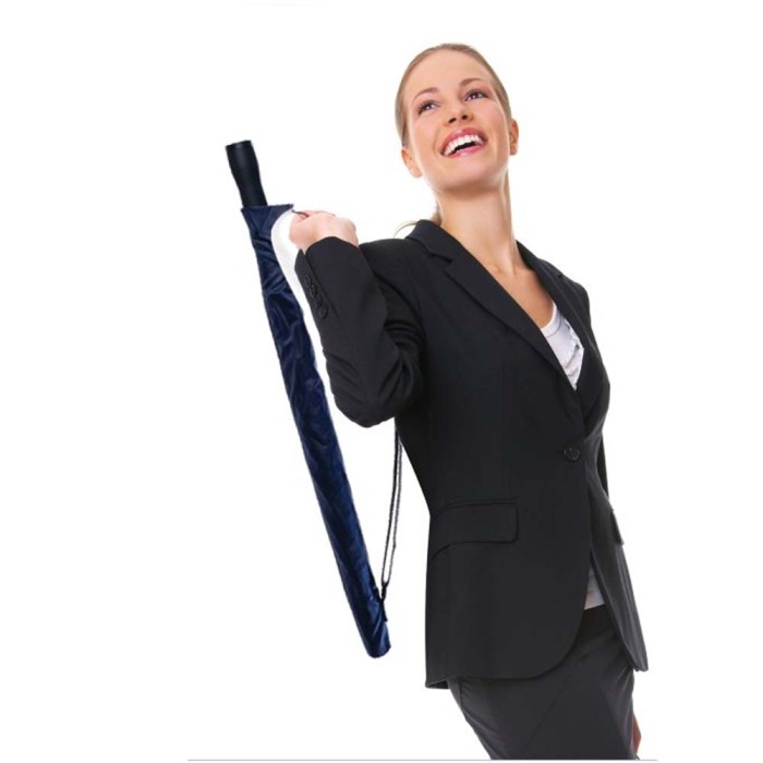 Art. AP911214 Ombrello antivento manuale ad apertura inversa con 8 pannelli, copertura bicolore a doppio strato in pongee RPET, struttura in metallo, nervature in fibra di vetro, manico gommato ed etichetta RPET.