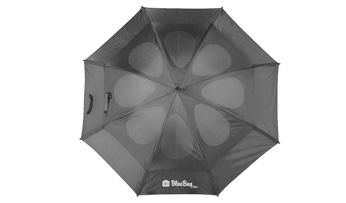 Art. SA1021 Ombrelli golf personalizzati custodia con tracolla a scatto automatico. Realizzati in poliestere 190T doppio strato. Custodia in tinta con tracolla regolabile. 8 stecche e asta in fibra di vetro nere. Manico dritto in gomma, puntale in plastica.