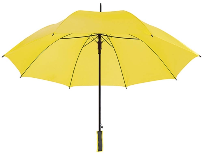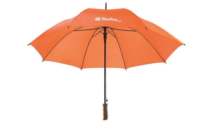 Art. GM091-PPL Ombrelli maxi stampati con struttura in fibra di vetro alta resistenza, fusto e puntale in metallo nero e manico bicolore ergonomico in eva. Circonferenza da 125 Cm.