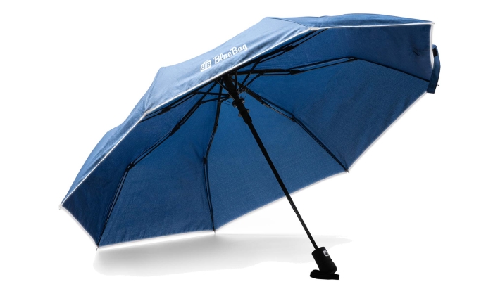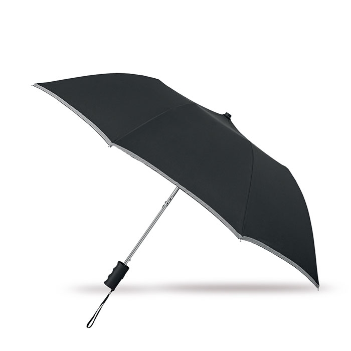Art. GM9695-MO Ombrelli mini alta visibilità, realizzato in pongee con manico in plastica nera. L’ombrello presenta le cuciture in grigio metallizzato e dispone della propria custodia coordinata.