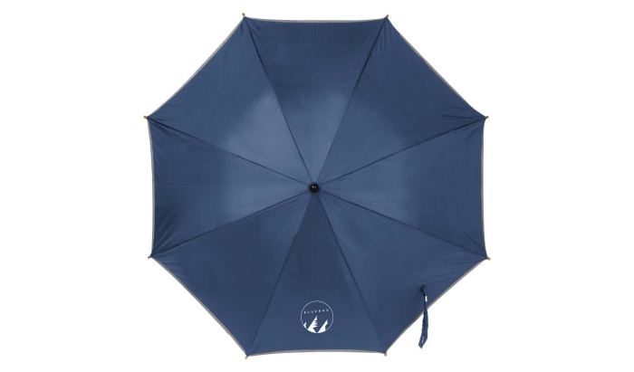 Art. GV5179 Ombrelli con bordi riflettenti, manico in legno ed apertura automatica. Realizzati in poliestere è personalizzabile in serigrafia o transfer su tessuto e con stampa tampografica sul metallo.