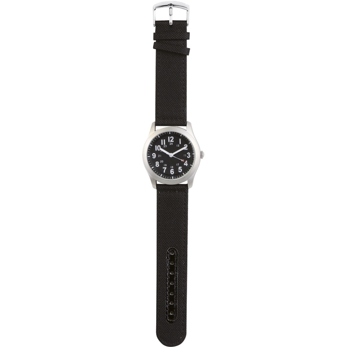 Art. PB21120 Orologi da polso personalizzati con logo realizzati in metallo e nylon. Presenta una cassa in metallo e un movimento Miyota 2035 assicurano precisione e durabilità. È personalizzabile con stampa tampografica a un colore o incisione laser.