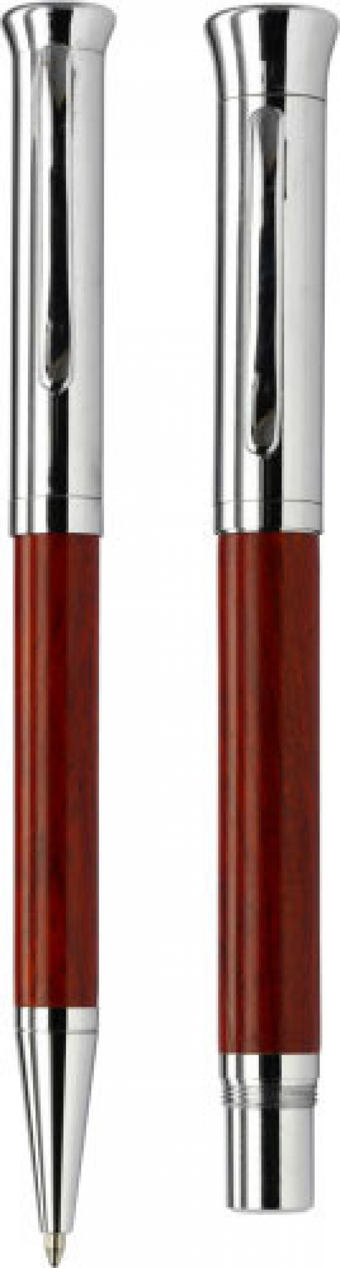 Art. GV9237Y Parure in legno, penna a sfera e rollerball in legno, componenti in metallo, in elegante astuccio in legno, refill nero.