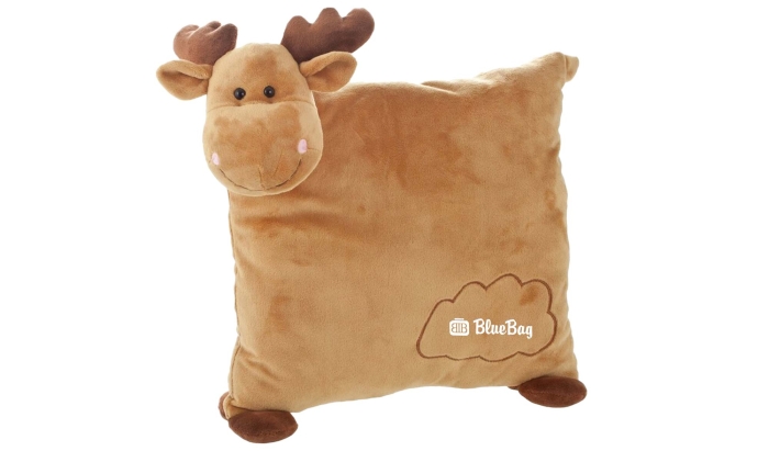 Art. FF799-27 Peluche renna, pecora, mucca o asino a forma di cuscino . Presenta una nuvola ricamata dove è possibile inserire il proprio logo aziendale.