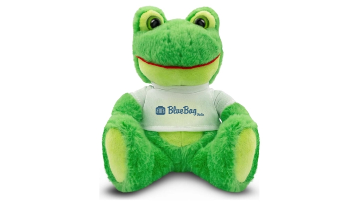 Art. FF309-17 Rana in morbido peluche con maglietta bianca adatta alla stampa.