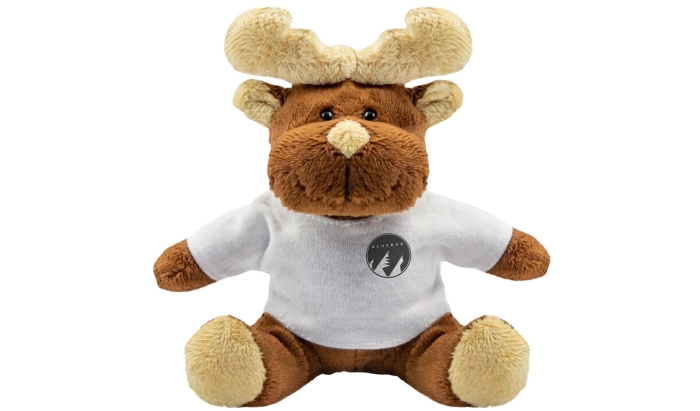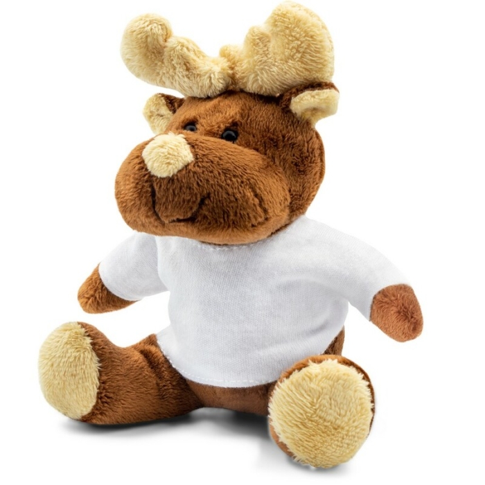 Art. FF512-27 Peluche a Forma di Renna Personalizzati con T-shirt bianca adatta alla stampa, realizzata in cotone. La T-shirt senza stampa confezionato separatamente. Se stampata verrà consegnato indossato sul peluche.