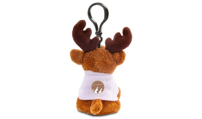 Art. FF887-27 Peluche renna da attaccare alla borsa, dotato di maglietta bianca personalizzabile.