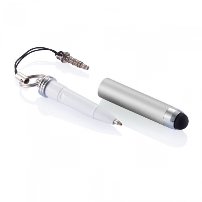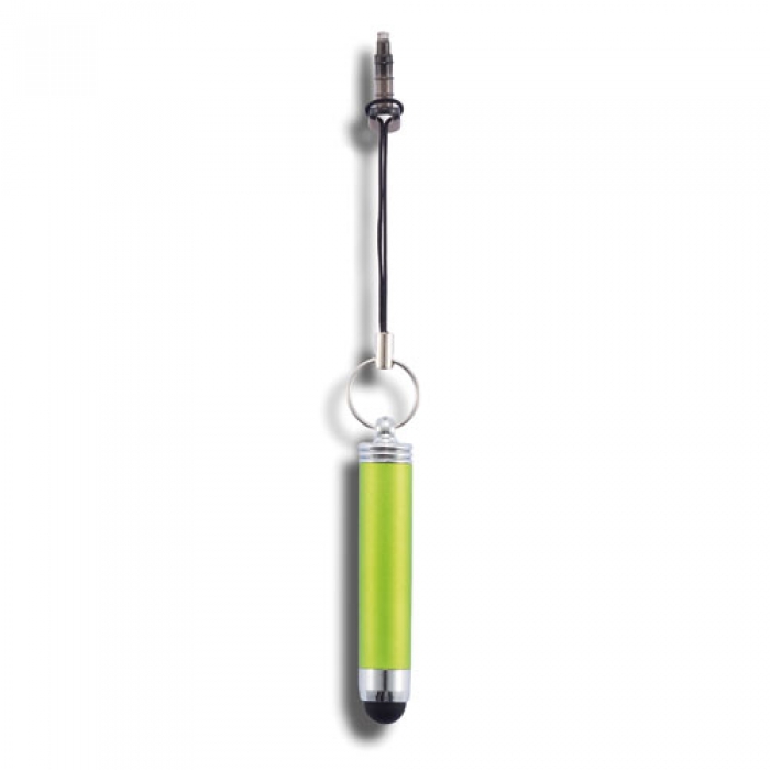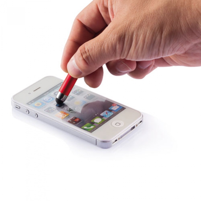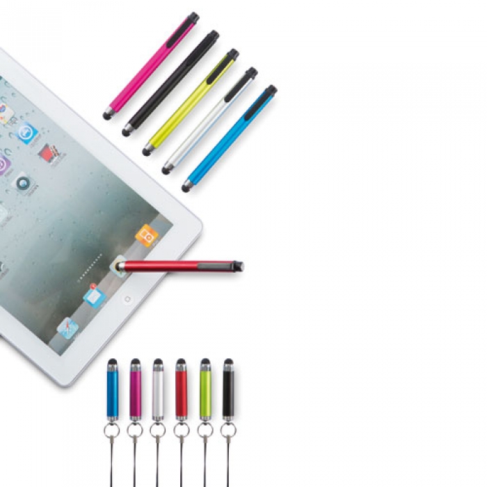 Art. 327050 Penna a sfera con funzione di touch screnn nella parte superiore. Dimensioni: 5,7 x 1D cm. Colori disponibili: rosa, nero, argento, rosso, blu e lime.