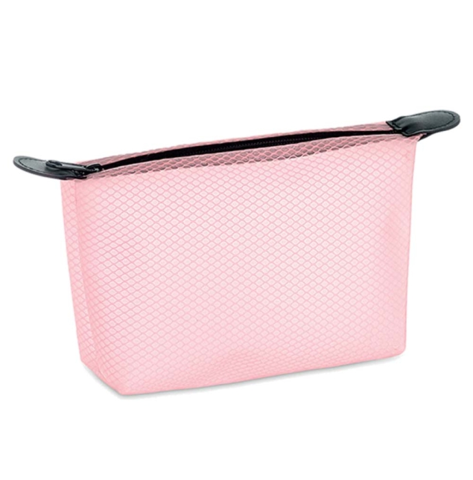 Art. CF334-B Pochette traforata in PP che permette di vedere il contenuto all’interno, presenta una chiusura a zip. Questo articolo è personalizzabile solo sull'etichetta.