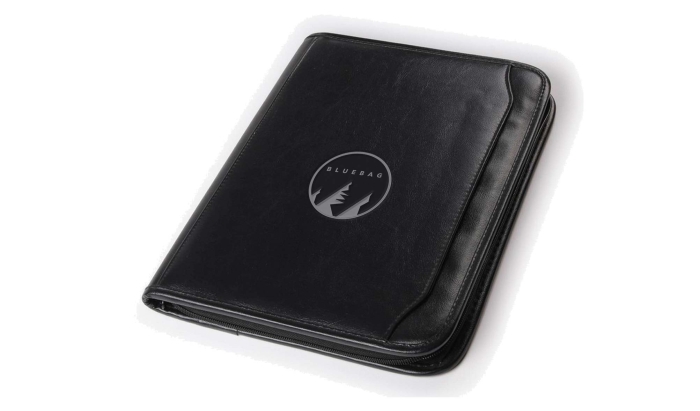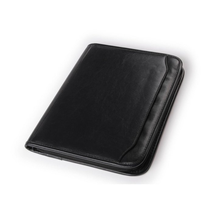 Art. SA3571 Portablocco promo economico a 2 ante in neopel. Dotato di chiusura con zip. Completa di blocco, calcolatrice. Vano porta penne, varie tasche porta carte di credito Colore unico. Confezionata in astuccio.