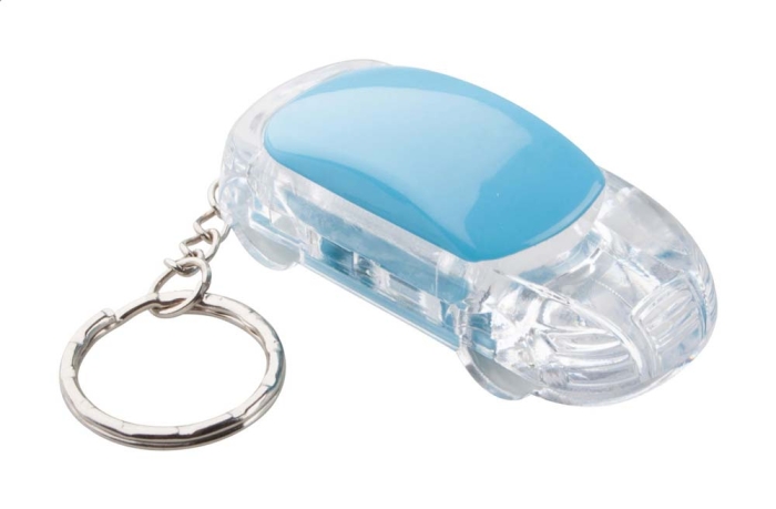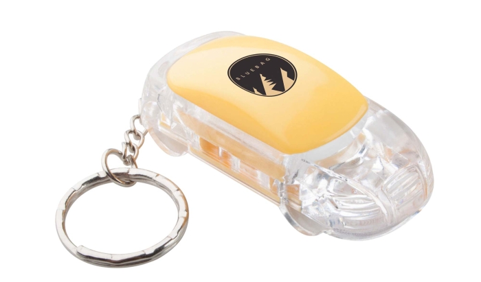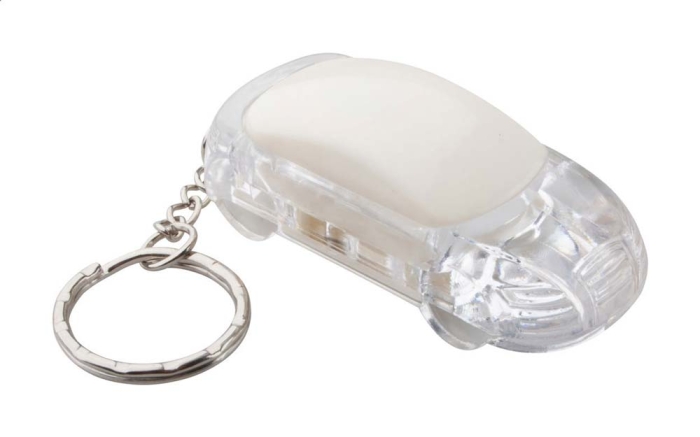 Art. AP921828 Portachiavi in plastica a forma di auto con luce LED bianca e anello portachiavi in metallo. Batteria a bottone inclusa.