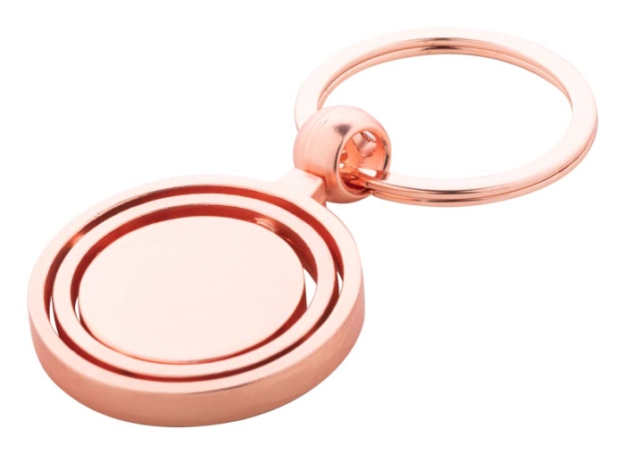Art. AP919266 Portachiavi con Cerchi Girevoli realizzati in metallo con finitura dorata e parte interna ruotabile. Confezione in scatola di cartoncino kraft.