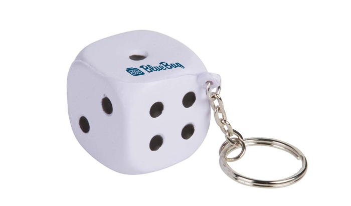 Art. PB25347 Il portachiavi antistress realizzato in PU, il portachiavi ha la forma di un dado e misura 3x3x3 cm, rendendolo compatto e facile da trasportare. È personalizzabile con stampa digitale, oppure con stampa tampografica a un colore.