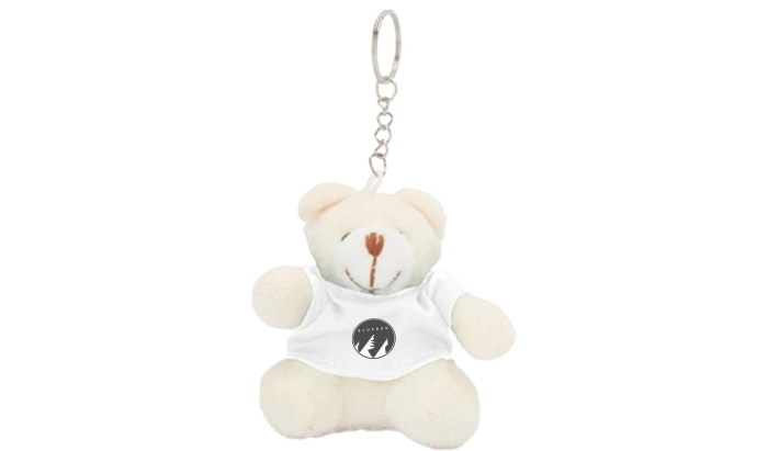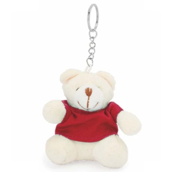 Art. ST943-99 Portachiavi con orsetto di peluche realizzato in morbido poliestere e con una maglietta colorata.