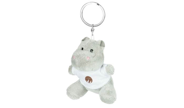 Art. FF695-29 Portachiavi peluche a forma di ippopotamo con t-shirt personalizzabile.