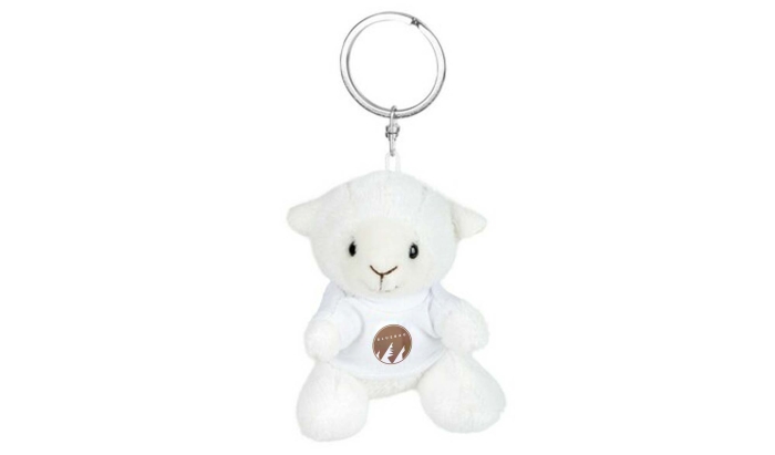 Art. FF840-13 Portachiavi peluche a forma di pecorella con t-shirt personalizzabile.