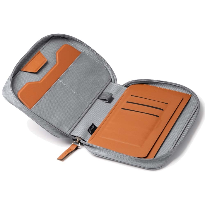 Art. ST2920 Portadocumenti da Viaggi Milano, realizzato in RPET 600D e PU con chiusura a zip e tasca esterna. Include supporto per smartphone, diversi scomparti e 3 slot per tessere RFID. Include un portapenne. Copertina in design ecologico.