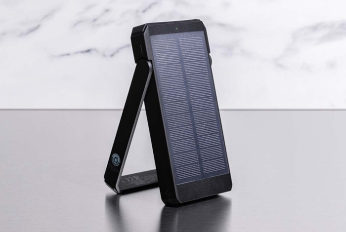 Art. X322-34 Powerbank a energia solare da 10.000 mAh realizzato con ABS riciclato certificato RCS. Utilizza pannelli solari monocristallini di alta qualità con un tasso di conversione del 19%. La velocità di carica dipende dalle condizioni atmosferiche. Dispone di un supporto integrato per utilizzare i pannelli solari con un'angolazione ottimale. La powerbank contiene una batteria al litio di grado A a lunga durata. Velocità di carica solare: 5V/200mA. Input di type C: 5V/2A. Output: USB A: 5V/2A Type C: 5V/2A. Incluso cavo di ricarica in TPE riciclato certificato RCS. Imballato in una confezione FSC®.