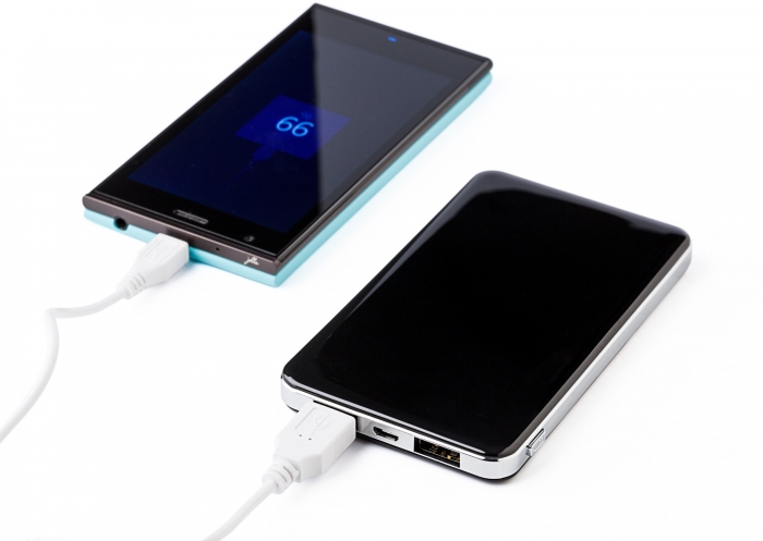Art. GV6664 Power bank ad alta capacità ai polimeri di litio; 5 led di capacità e cavo bianco.