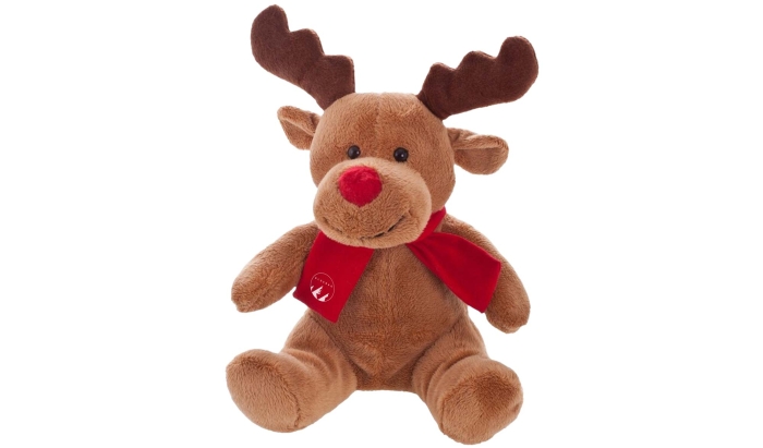 Art. FF793-27 Peluche Natalizio a forma di Renna con sciarpa rossa adatta alla stampa (sciarpa senza stampa confezionata separatamente).
