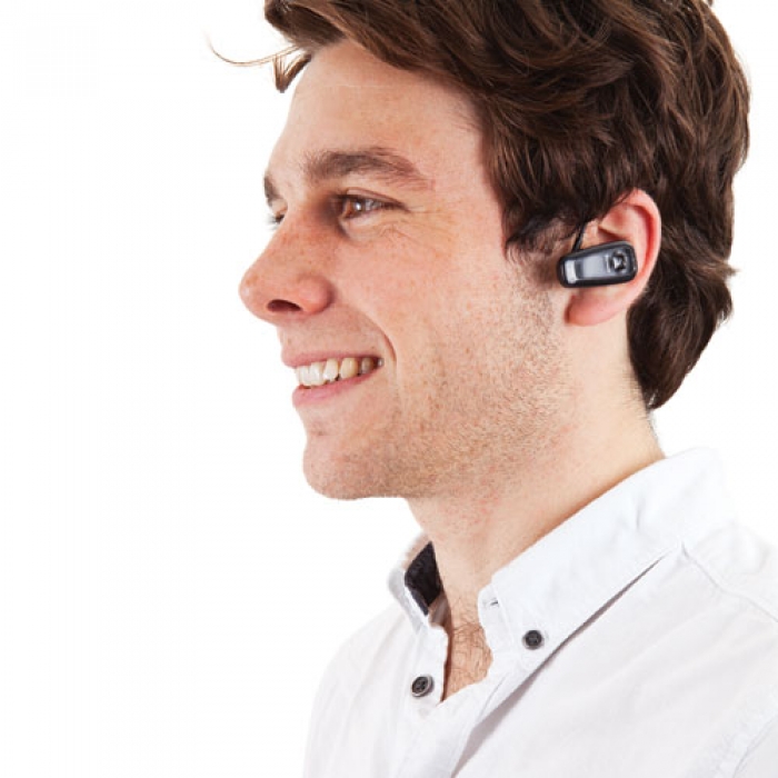 Art. 3201 Auricolare Bluetooth con attacco USB per la ricarica. Ha un´autonomia di 72 ore. Dimensioni: 2 x 13 x 7,5 cm