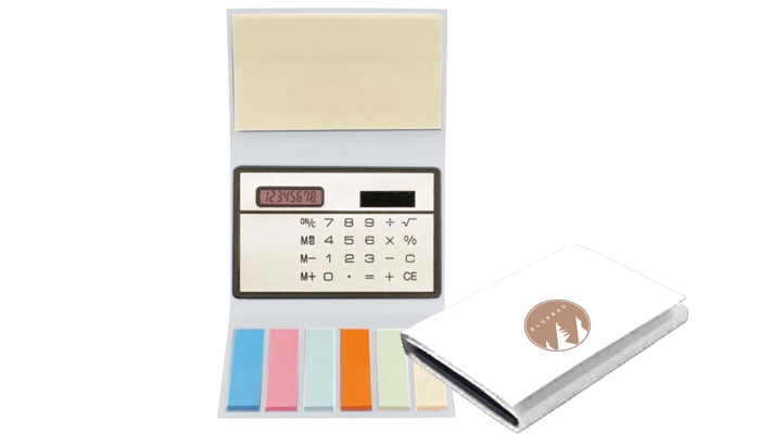 Art. GM419PKH Portacarte accessoritato di calcolatrice, con funzionamento solare e post-it.