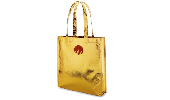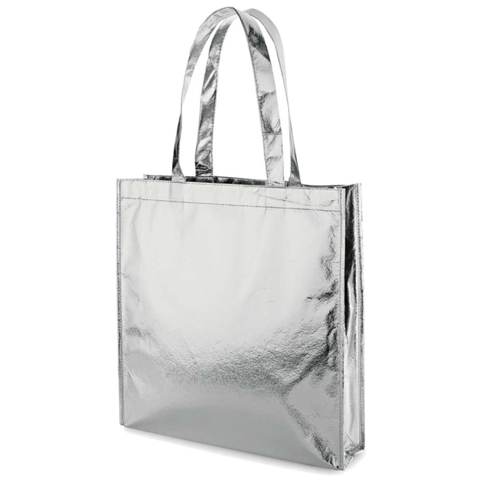 Art. CF856Y Borsa in TNT dalla finitura lucida con effetto "glitterato" pressato. Elegante, sofisticata e di qualità. Con doppio manico corto. Disponibile in due misure.
