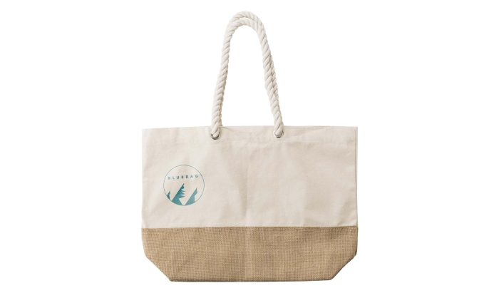 Art. GV2125670 Shopping bag in cotone 280 gr/m², base in juta, grandi manici in cotone stile corda marinai.