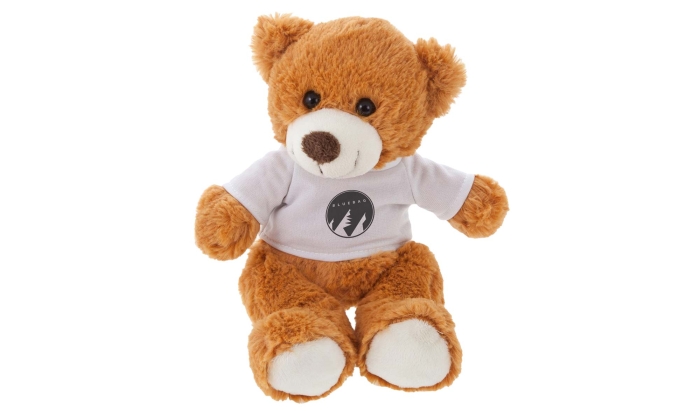 Art. FF784-27 Peluche teddy con il visino simpatico e sorridente. Piedini in contrasto di colore. È possibile personalizzare questo peluche sia sulla t-shirt che sul piedino.
